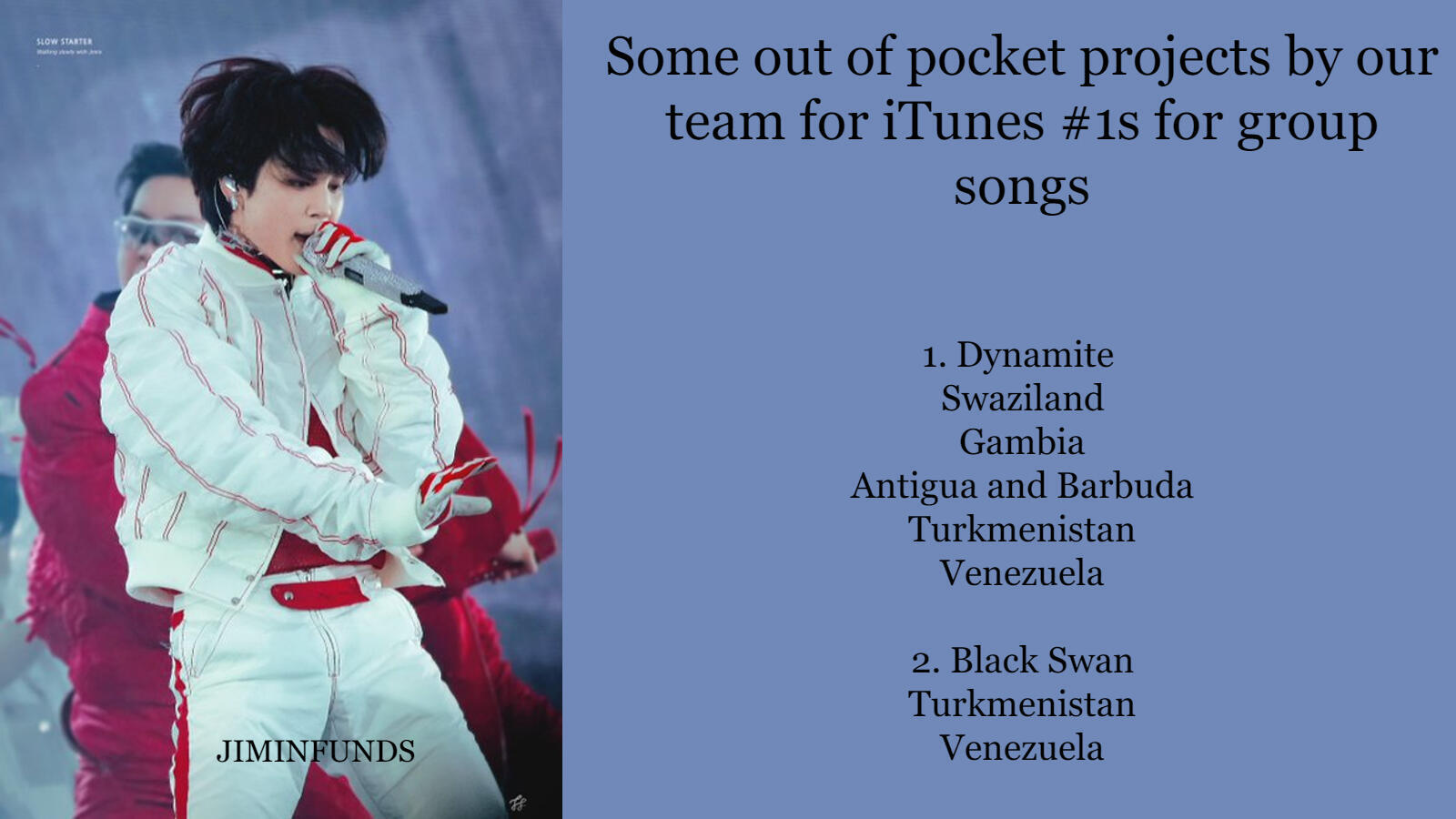 Below is an extension of the compilation of what we have been able to accomplish with your support. There are charts showing a list of all the countries where the different songs (solo songs under BTS and collaborations & features) have reached #1 on iTunes as well as achievements made by the same songs on Billboard's World Digital Song Sales and Digital Song Sales charts, among other Billboard charts.There are also records the team's world towards BTS' group songs on iTunes charts, among other things.